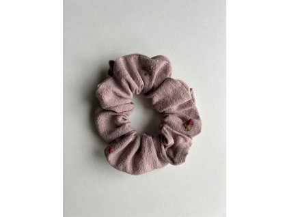 Ručně vyšívań scrunchie gumička s jemnou výšivkou. Stylový a šetrný doplněk do vlasů, který drží účes a zároveň ho ozdobí.