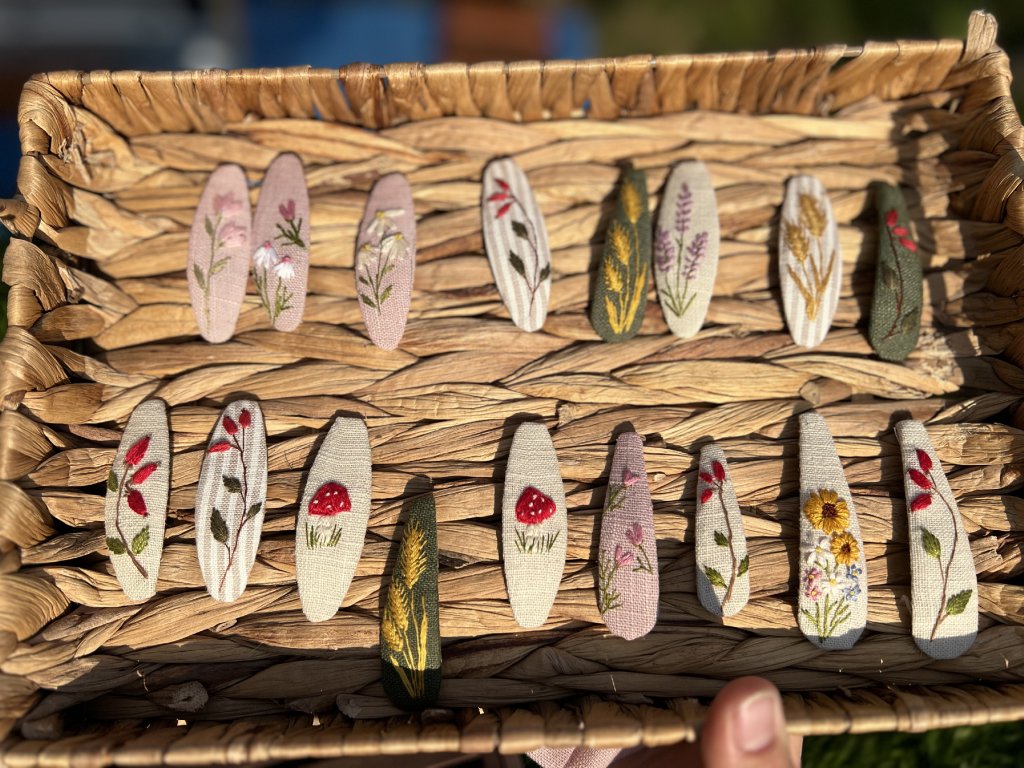 Jemná ručně vyráběná sponka do vlasů s květinovým motivem, vytvořená s důrazem na detail a jednoduchou eleganci. Každý kus vzniká na zakázku a je přizpůsoben vašemu přání, aby dokonale ladil s účesem i stylem.